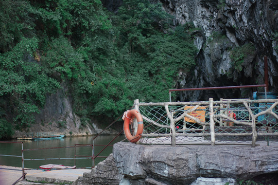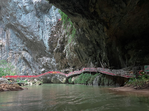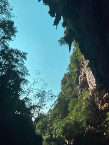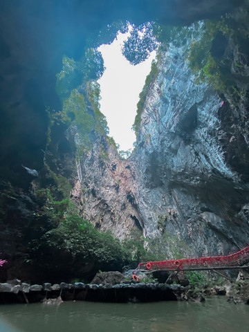 下了玻璃桥,我们就来到了闻名已久的天坑。这是华南地区最大的天坑,深达231米,面积近百亩的喀斯特天坑,进入天坑游玩有两种途径,一种是坐船游玩,一种是从悬空栈道走进去游玩,两种方式各有各的乐趣,我们选择的是坐船游玩。