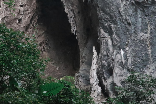 天坑内壁上的是石灰岩山体,在雨水的沉积和地表水侵蚀共同作用下,形成了形态各异的岩石奇观,其中最让我震撼的是观音赐福,这是一座已经屹立在峭壁上亿万年之久的奇石,酷似观音菩萨正在传经说法、降福赐寿,为“天坑第一天然观音”。