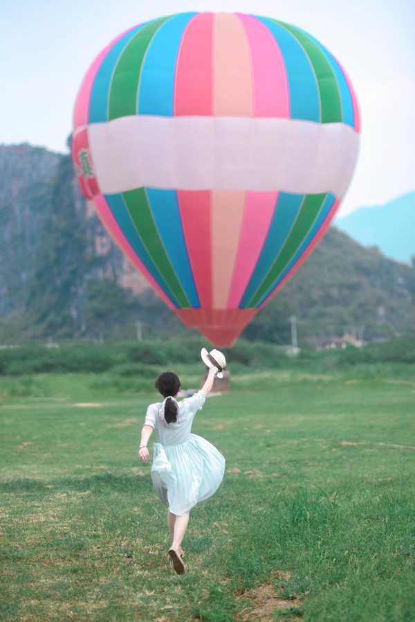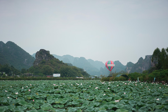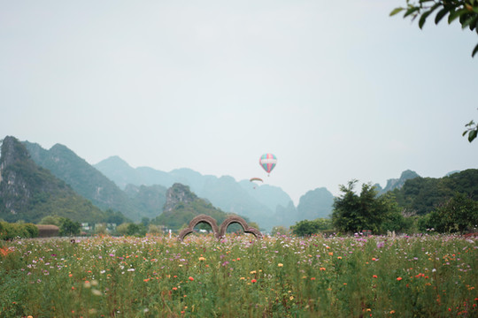 在这里,可以以热气球为背景拍出美美的照片,也可以坐上热气球和滑翔伞,在高空中俯瞰这一片峰林美景。