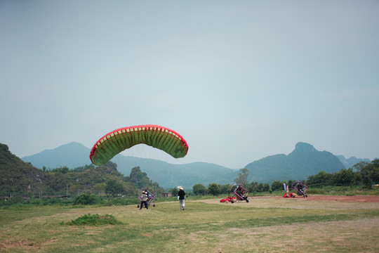 另外,非常值得体验的还有热气球和滑翔伞,这两个项目都在飞行基地,超大面积的空旷草坪上,远处山峰延绵,彩色的热气球和滑翔伞上升在这一片景致中,超级梦幻超级美!