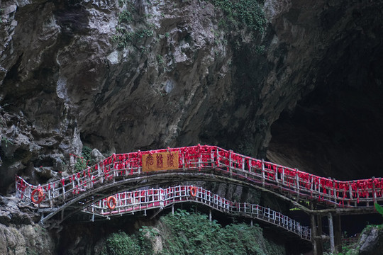 景区融山、水、石、潭、钟乳、瀑布、天桥、天坑、绿洲为一体,是一个集“天坑奇观、玻璃观景台、玻璃滑道、休闲娱乐、特色美食、野外拓展”的原生态综合型旅游景区。