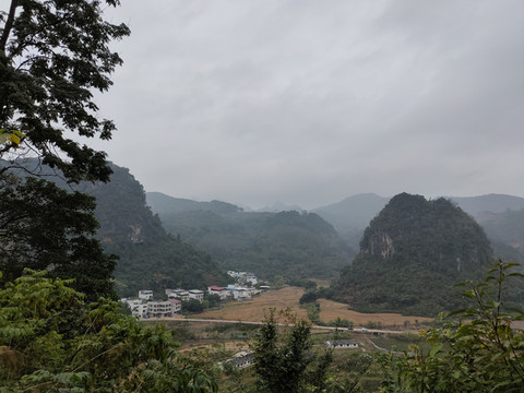 出得洞口,才知道我们不知不觉已经攀登到了山顶。从洞口往外看,也没有“一览众山小”的豪情,实在是周边的几座山海拔和绝对高度都不低。不过,视野倒是很开阔的,毕竟山与山之间,还是有不少田园的。如果漂流开放的话,可能景色更加不错。