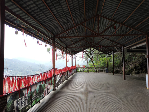 不多远有一座观景台,用竹子制成。广西多山,竹子也是重要的经济作物。四面敞开,系着密密的红绸,可能又有什么说法,可惜我们并不知道。