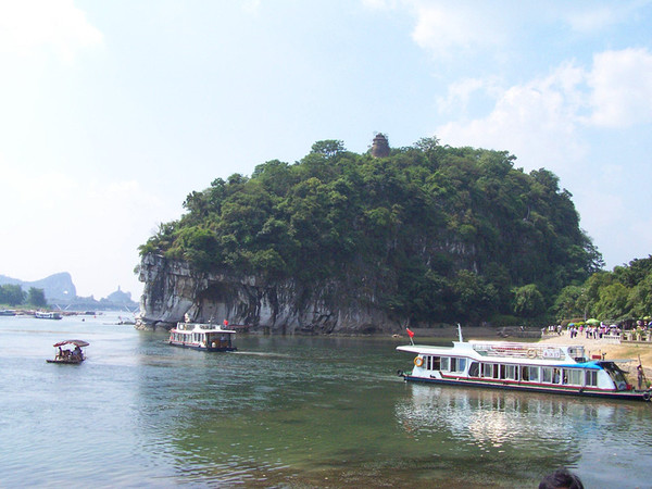 午餐后,进入象鼻山公园,开始下午的游览。象鼻山是桂林的城市名片,明代旅游达人、资深美食家徐霞客也曾驻足此地,还著文一篇。象鼻山立于漓江和桃花江汇流处,酷似一头大象,象鼻子伸入江中饮水,江水在象鼻子和象腿形成洞中川流。