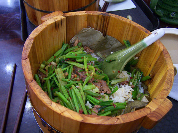 2009.8.21 11:12,午餐:芹菜牛肉木桶饭