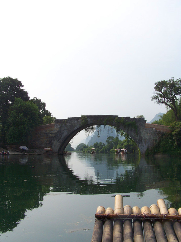 遇龙河漂流是一件令人赏心悦目的乐事。竹筏在两岸山峦及凤尾竹倒影中缓缓前行,水面平静,感觉此刻的遇龙河只属于自己。身处这样的环境,很容易忘记所有,像是给自己的心灵做了一次SPA。这是11年前的遇龙河,不知道如今的遇龙河是何种情况,如果人声鼎沸,就完全没有这种意境了。经历了大概3小时漂流,到了此次漂流的终点,工农桥。