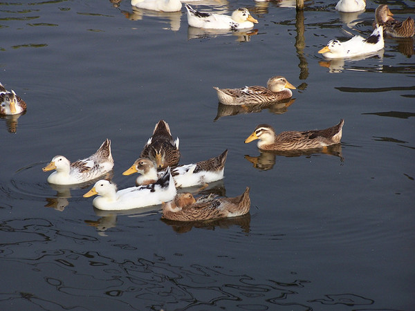 途中路过一处池塘,看见池中到处都是鸭子,不禁驻足观看。
