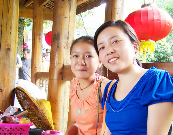 2009.8.22 14:22,卖百香果的女孩与老婆合影