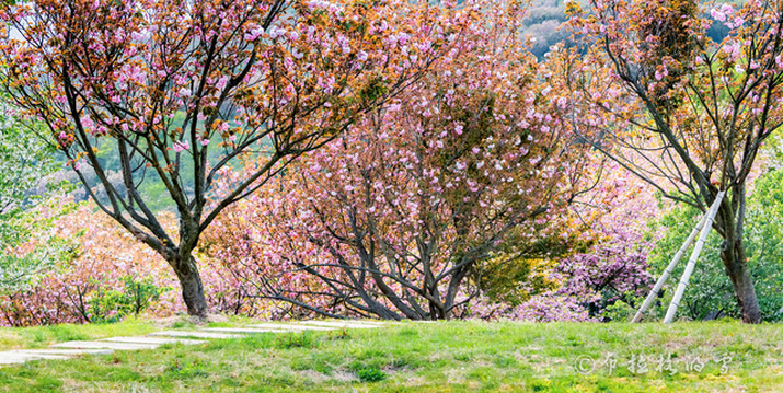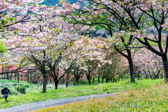 杖锡樱花园是浙江省的樱花基地和樱花基因库,种植的樱花品种众多,规模庞大。从3月初始,这里的早樱开始开放,一直到5月初,整整两个月,各个品种的樱花在这里交替盛放。