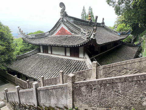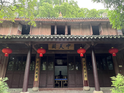 从山顶往下就看到阳明先生讲学处(中天阁):初建于五代,取唐代著名诗人方干《登龙泉山绝顶诗》中“中天气爽星河近,下界时丰雷雨均”之句,名之为中天阁 明正德年间,由大儒钱德洪开辟为讲堂