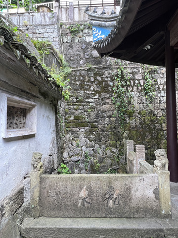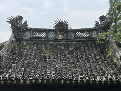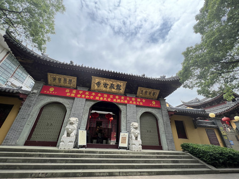余姚城隍庙山门:城隍传为古代城池的守护神,余姚城隍庙始建于宋代 原在龙泉山东南麓 后迁至县衙东首 元明清时期皆有修建 20世纪80年代 城隍庙三门按原样迁建于中天阁西侧 该山门 为清代建筑重檐歇山顶 五开间 古朴庄重 体现了浙东古代寺庙建筑的艺术特色