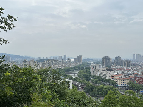 沿着阳明公园的台阶一路往上到观景台 俯视余姚城