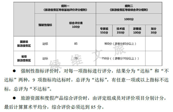 《细则一》——旅游度假区等级初审评分细则:用于旅游度假区基础评价,内容包括强制性指标、资源环境与度假产品综合评价。