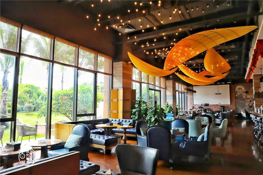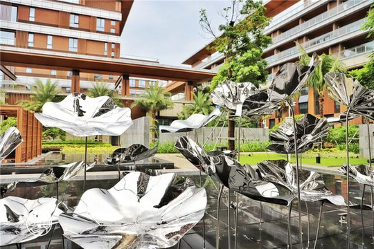 别墅中心地段是一个火炬广场(全国只有两个火炬广场,另外一个在北京),或许意味着#好享海南·“氧”心之旅# ,把“氧”心的概念如火炬一样传递下去。火炬广场下层是艺术画廊,平时会有展览,艺术熏陶少不了。