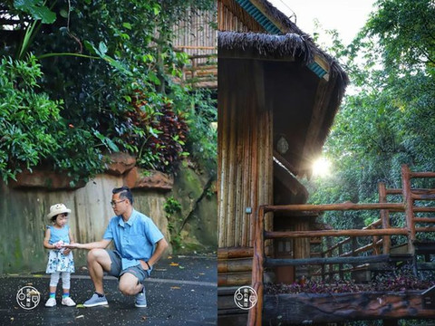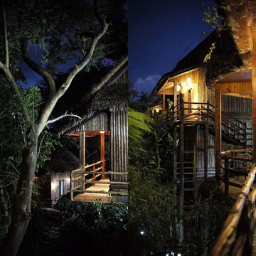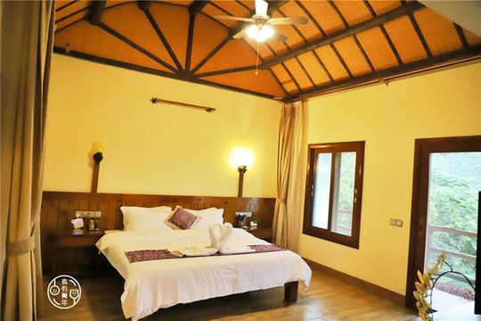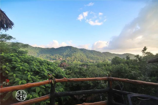 今晚住在槟榔谷景区里,也住在山里,景区里独有的兰花客栈,以“浪漫雨林兰花,养生田野黎家”为主题的海南苗族吊脚楼,融合了黎族传统船型屋的特色。