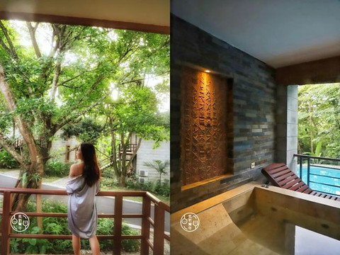 海南保亭的热带雨林区里的隐秘的角落,是这家七仙岭君澜度假酒店,喜欢迎宾饮料木蝴蝶和鹧鸪茶,融入了海南本土特色,雨林别墅设计别出心裁,我们是住在香樟树下,拥有私家温泉池,开门就能看到泳池,宝宝第一次享受温泉澡,画面太美就不公开了。