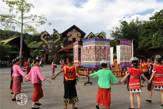 这里是北纬18度黎苗文化的靓丽名片,穿上特色的黎苗服饰,堪称今天最美亲子装。