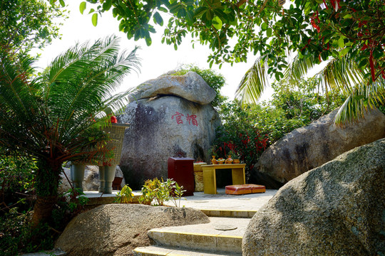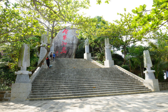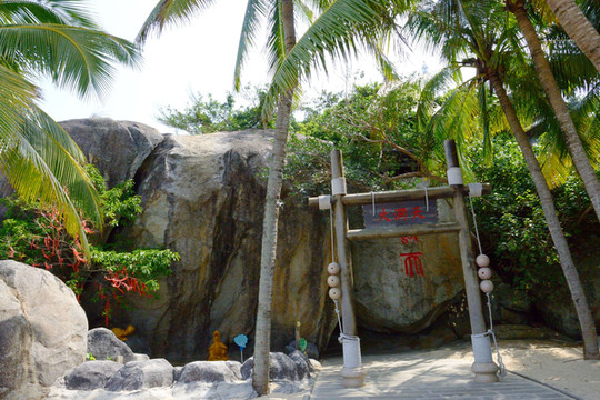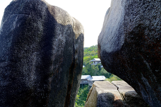 船开十分钟就到了岛上。我从船上看到岛的半山腰的大石头雕着一个女人头像,面部是分开的,过后才知是热带和亚热带分界线。如果你上去最像,千万不要摸,至于为什么就不清楚了,这是我们蹭导游时听到的。