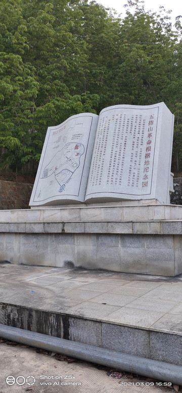 再找找,距市区30多公里是五指山革命根据地纪念园,继续出发。经过几个乡镇,道路两边的田里种满豆角、青瓜,许多车辆正在装车。1个多小时来到五指山革命根据地纪念园。纪念园大门有两幅雕像,一幅是简介,一幅是人物造型。