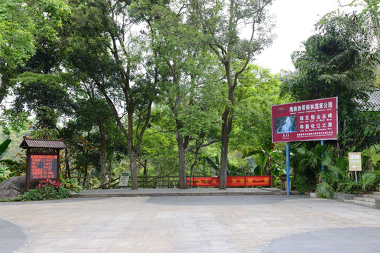 因时间问题,以及朋友体力原因,我们决定只到昌化江源头,把车停到左边景区,下车即看到“国家雨林”标志。