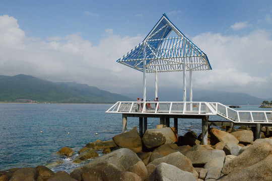 不远,一座伸出海出的景观平台很漂亮,这是打卡点,在这可见湛蓝的海水,尉蓝的天空,遮天