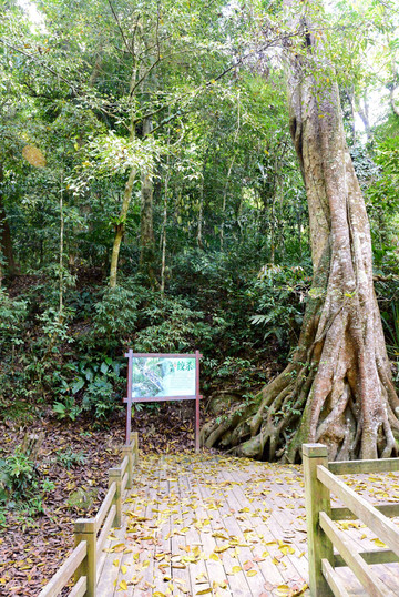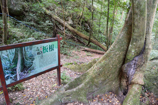 继续往上走,一颗大树的根一片片突起在地面上,旁边介绍叫板根。