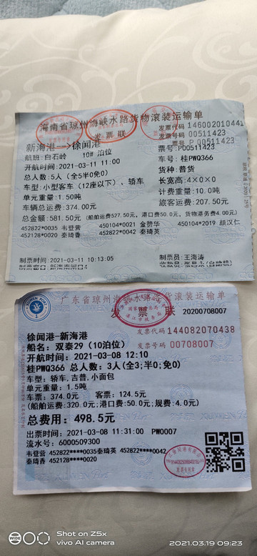 很快来到闸口,问了下,可以赶上12时10分的航班,于时提供所有人员身份证购票。过渡费一共498.5元。其中:车票374元,客票124.5元(3人)。实际上,粤海铁路北港码头要等火车,时间比较固定,而其他两个码头基本上是每小时一班,或者是满船就走。