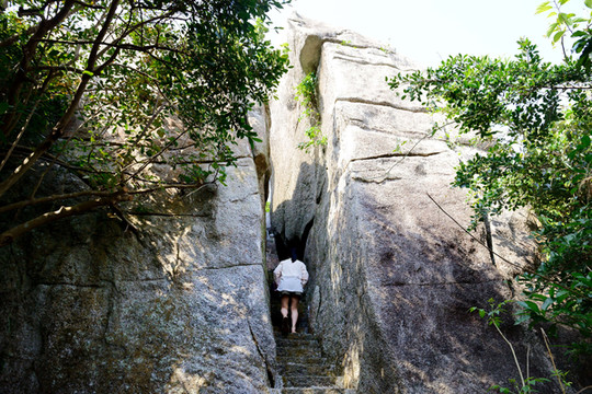 山顶巨大的石头上刻着分界洲岛几个大红字,游人大多在这里拍照。