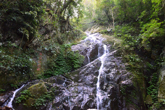 走了一个多小时,抬头看见一帘小瀑布,走近一看,我们来到了昌化江源头。