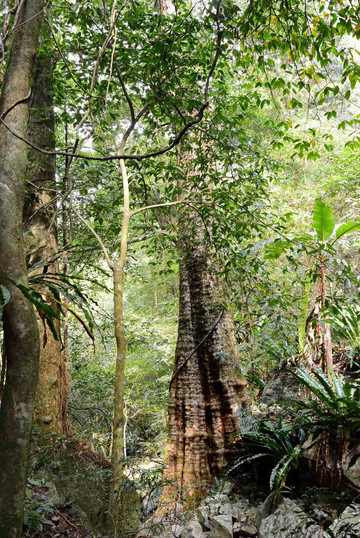 拍摄后继续入左走,进入真正的热带雨林,高大的原生态树木遮天盖地,碗口粗的野藤满山遍