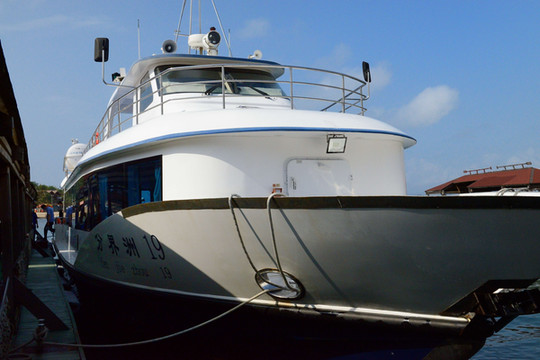 一个多小时我们就原路回到码头,直接登上港渡轮。船上播放着介绍分界洲岛景观的影视片,使你在离岛前对该有更深的认识。