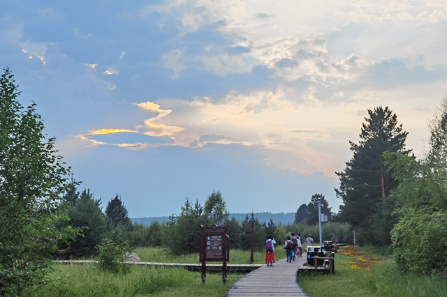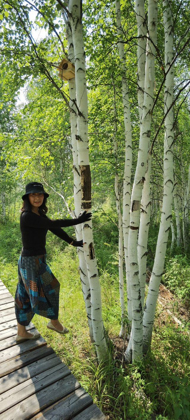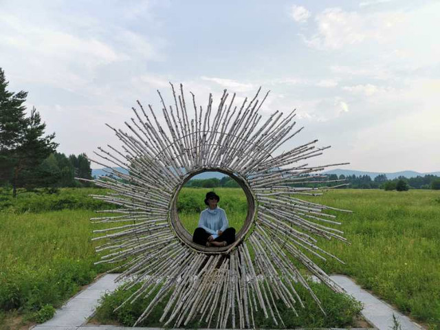 到了漠河,一下火车,蓝天白云还有阳光,送上北部三十三度的最高热情(据说这是史上少有的高温),阵阵松香早已把一路风尘涤荡。司机师傅迎在出站口,已把车内空调调至舒适温度,一行人上了中巴,直驶向北,那里有个北极村。