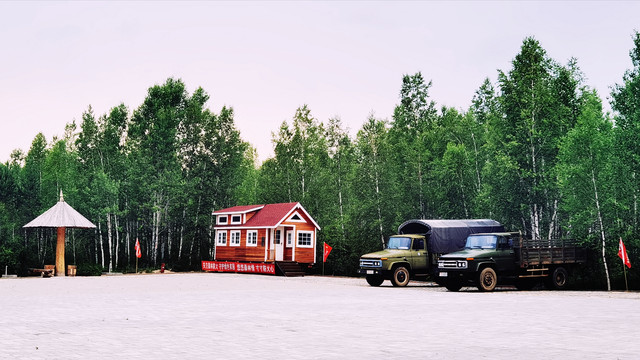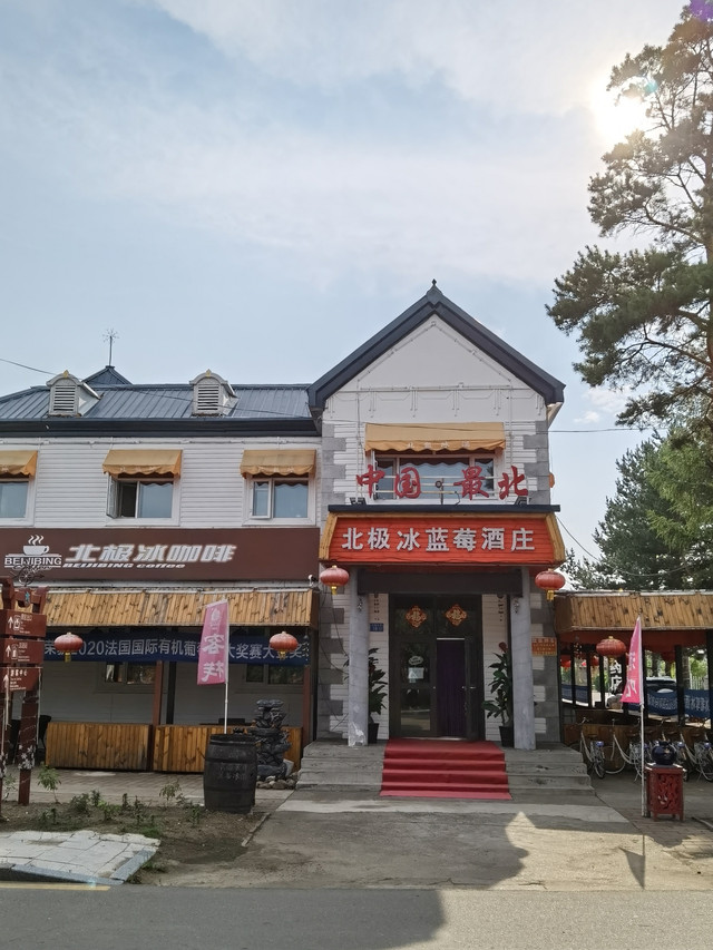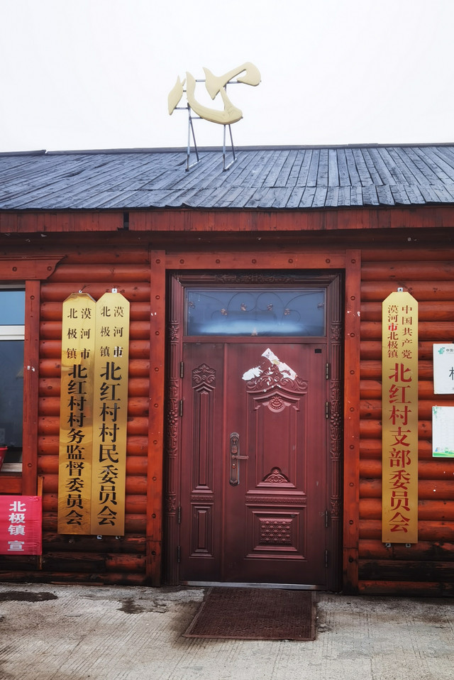 今天司机师傅安排我们入住北红村。 北红村邻近龙江第一湾,北纬53度33分,北极村北纬53度29分,一字之别4分之差,使北红村成为了名副其实的中国最北的村庄。最近几年由于水电、通信、公路等配套设施的完善和旅游业的开发,使得这个昔日名不见经传的小村名声鹊起。临近傍晚抵达北红村,斜阳散落在村道旁的一栋栋房屋和院落里,显得小村极其的宁静祥和。随着旅游业的突起,不少村民开起了民宿,当然还有超市、邮局、农信社、学校,甚至还有酒吧、面包房,更少不了哨所,所有这些都被冠上“最北”二字。