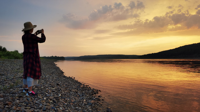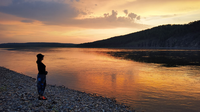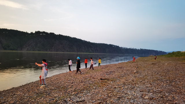 也许是一天未进正餐,也许是人多吃饭就是香,这顿饺子是我吃过的最好吃的饺子。饺子吃完了,精气神又来了。外面朦胧中落日余晖尚在,民宿后身大约百余米就是中俄界江——黑龙江,一群人急急地奔向江边去追逐落日。夕阳,永远都不失它的美丽灿烂,晚霞洒落在江水里,由橘红逐渐转为橘黄、淡黄,直至消失。采一缕西下的暖阳揉进梦中,那是中国最北最美的梦乡.......