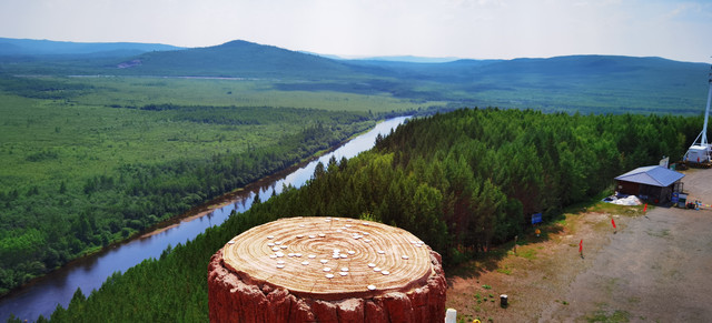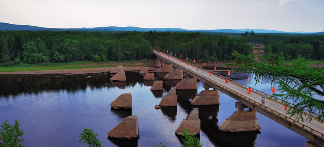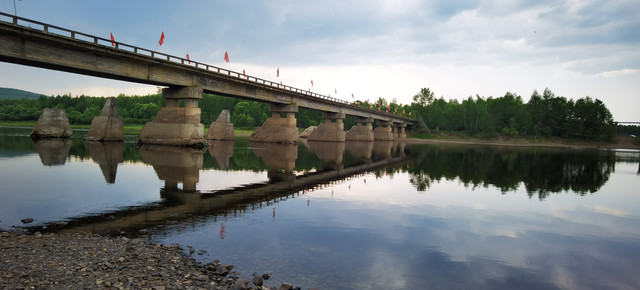 继续前行,便到了额木尔河63大桥,桥头有一处28站古驿路站址。是晚清政府在此开采黄金设置的驿站。不远处便是中国最北林场——图强林场的营地