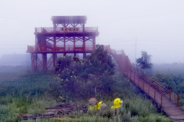 惦记着龙江最北的日出,凌晨三点强行截止了我的美梦。起身走出门去,天地间一片朦胧。远山近水,田地村庄都笼罩在迷茫的浓雾中。