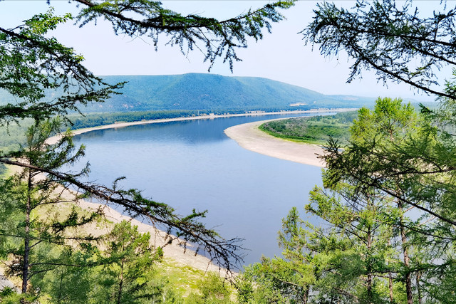 黑龙江沿着最北点向东流到图强林业局红旗岭段遇到阻碍,形成了一个完美的“Ω”形江湾半岛奇景。这个长达30公里的壮丽的大江湾被称作“黑龙江第一湾”。美丽的江湾也默默地记录着黑龙江曾经沉重的历史。中俄以黑龙江中线为界,那个漂亮的半岛,在江的对面。我们不能忘记,就在不太远的160年前,她完全是中国的内江。第二次鸦片战争之后,《中俄北京条约》将黑龙江以北、乌苏里江以东的100多万平方公里国土割让给沙俄,两条内河从此变成了界河,这片中华沃土,成了俄国的远东。晚清历史,令人痛心。如今一弯三岛只有一个“金环岛”属我国领土。