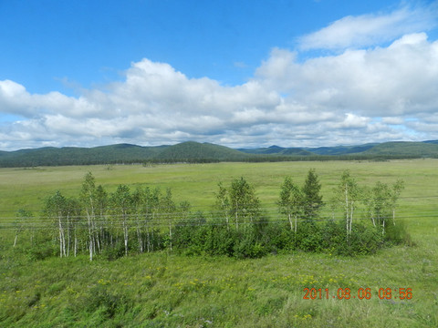 而在大兴安岭林区,林子、草原、草原、林子、永远是林子,莽莽林海,是不是有点过于单调了?今年1月份我还在大西南教泸沽湖的孩子们唱“高高的兴安岭,一片大森林……”是的,这首歌很提气,特别是很提孩子们的气儿,可来到这儿一看,原来兴安岭真的不高,就像一个个蜗牛静静的趴卧在大地上,而且还很温柔呢。
