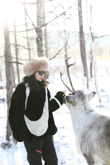 2022.01.09七点多醒了,半夜热醒好几次,炕上睡觉属实暖和,起来打开窗户,外面都是积雪,冷空气直接冒进来,词汇我已经都形容不出来的景象,民宿的阿姨已经给我们煮好早餐,自己家做的小菜以及大馒头包子和糙米粥,北方人胃口真是好哇,吃早餐的时候,外面的太阳已经升起老高了, 小哥早就准备好开水,让我们体验南方这辈子都感受不到的泼水成冰,然后我们就挨个拿着一壶开水直接往头上泼,泼的时候还是挺心有余悸地,虽然咱丑,但不能更丑啊,但是一出场这个水立马结成冰,这个场面还是相对来说比较壮观的,也是一直想来体验的项目之一,然后冻得受不了又回屋子加了件毛衣,准备坐马车(此马车不是你们想的那种很爽的马车QAQ),总之这一趟一个小时的户外行,是我这辈子最动次动次的时候了,一路上盖着红配绿大被子,还是冷,睫毛眉毛头发都结冰霜,手都冻得没知觉了,草草拍点照就赶忙走了,当下那会什么都记不清,只记得自己去了几个地标性的景点。看了好多雪人包括大白,看了很多标识,反正太阳底下,白茫茫的映入眼帘除了雪和大棉袄子的大哥,白茫茫的树木,没其他了,所以建议墨镜一定要带一个,太刺眼了。最后只记得坐着马驼赶着车夫师傅赶快送我们回屋,回屋外衣围巾帽子全都湿了,躲在老板店里的地暖喝了杯暖咖啡才稍微缓过来,感觉穿再后手脚都冰冻的没有知觉,休息了小半个小时就直接坐车回住宿吃午饭了,中午吃的是东北大饺子和他们的杀猪菜,到现在都没整明白这才到底哪里好吃了,看着东北小哥吃的津津有味哈哈,大概再回屋里头把能穿的都套上后,又重新出门了,下午一点又要去下个点就是独有的驯鹿园,这边的鹿很温顺,买点喂食就很配合的一起拍照,可惜衣服没穿对,穿的黑不溜秋的属实不是很好看,喂一喂,拍一拍,躲进帐篷里围着火炉烤火取暖,身子再一次回温后就去下一站(仰天长啸,真是贼特么太难了