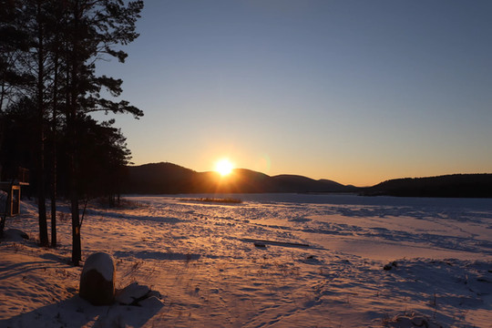 连着住了几天的酒店 很舒服自在 到处是结了冰的河流 这河叫布尔哈通河