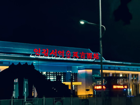 2022.01.06,十点的动车,七点起来了,然后小老弟感冒了原地休整一天,我就自己整装待发,两件加绒裤还是被冷到了,又转去西市场临时买了一件加绒外裤套外面直接坐着公交去延吉站坐动车,车窗已结冰,然后车上都是放着韩语听不懂的思密达,只听到最后大家下车了我就跟下车了,又是自己一个人的一天,感觉越来越独立了哈哈哈,虽然只有十分钟车程,但在车上我还是看到一个超级宇宙帅的列车员,,就那么一眨眼的功夫,呜呼,我就到了,然后直接坐了门口唯一一辆公交车就出发了,图们是个像我们上白石一样的小地方,却有着隔河相望的朝鲜边境,第一次看还是掩盖不住的兴奋,这边的人也个个都热情,所以打留念问题不大,途中遇到一个女孩子就一起玩了一路,也就两小时啦,现实看到边境威严的中国国徽,然后再走进去一百米就可以看到朝鲜对面炊烟和口岸坐标,没去过国外的乡巴佬,看到就觉得很新鲜,司机师傅告诉我们以前没疫情的时候可以过去朝鲜一日游,拍了下照片,唠了好一会,我们就撤了,做的大巴车回去的,然后我隔壁坐着一个警察哥哥,也一路跟我聊过来,伤不起,感觉好久自己也是很会吹牛皮的人,在他们那里,我真是小巫见大巫,到了后,找了一家全州拌饭地道饭店吃了顿很满足的午餐,然后下午做了个核酸检测,回酒店休息,这个晚上,我失眠了,八点睡到两点后,就一直没睡着直至第二天上午八点的动车。晚安,上图。
