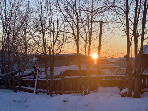 对面就是俄罗斯了 就睡在炕上 外面是层层的积雪