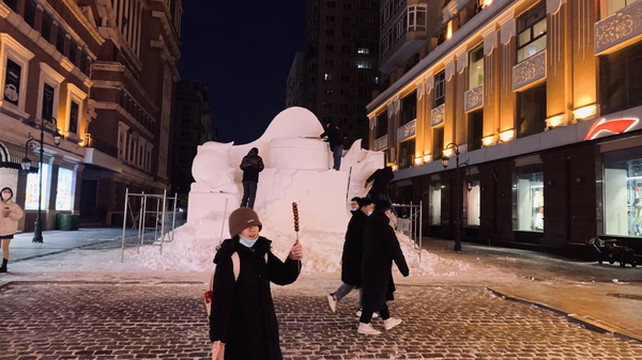 01.03 睡了个自然醒,十点左右起来,整理出门,想我堂堂铁铮铮热血女儿穿着穿着两条加绒裤,很傲气的走出酒店,走出整整一百米直到被白天的天气逼退回酒店再上了一条超厚加绒足足三条后再整装出门(其他不说,脱裤子真的贼麻烦qaq),逛了下中央大街,到处都是扫雪的环卫工阿姨叔叔,我真是个超爱记录拍照的南方妹子,可是在此时此刻我已经拿不出我的手然后脱掉手套留念了,只找了个商场吃东西,里头的人竟然都穿着短袖,MMP,说我们南方冬天比大北方冷真是不为过啊,最后找了个冰淇淋店吃着然后四处逛逛,等一起约好的哈尔滨一日游小伙伴,诶,毕竟-怪暖的,就是不出去,哈哈,然后就买各种冬天的装备,一起逛了哈尔滨市区,索菲亚教堂一起拍照,还和工作人员大叔热聊,说我们口音一听南方人,哈哈哈。随后就一起吃了晚饭,搞笑的是点了一碗十元的特色冷面,特地交代我们胃口小,还是做的超大盆,原谅我用盆形容,问了老板还是减少一半的分量做的,这也许就是北方人比我们南方人高大粗犷许多的原因吧。好感度加一,大方率直,而且基本与之每个有过一面之交的(司机师傅饭店服务员小卖铺老板问路的路人甲乙丙丁都非常热情友好,也是加分的地方之一),再一起做了核酸(大概这次东北行大概做了五次核酸),真是太难了,这是后话,就一起去冰雪大世界,因为疫情原因所以打了五折,算不枉此行,坐了刺激的滑冰,雪地滑雪转圈等,算是真正体验北方的冬天,南方人体验不到的快乐。但是实在是太冷了,所以冰雪世界下午六点进去拍拍照就走了,大概到晚上八点多一起小逛了下市区,就和短暂随行的的妹子分道扬镳结束3号行程。附图