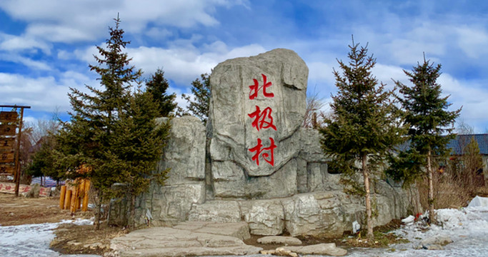 北极村碑,位于黑龙江省大兴安岭地区漠河县北极村通河路。是北极村的标志性建筑,与村碑合影才能证明你来过北极村。村碑下可见一条小河,这条河叫做“墨盒”,也就是漠河县的源头,为什么称作墨河呢?因其与黑龙江一样,从上空俯视,一片黑水,但不是因为污染,是因为东北肥沃的黑土资源影响。