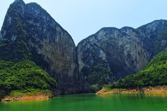 清江大峡谷,游客在景阳码头乘船观看壮观的800里清江醉美一段景阳画廊:河谷幽深,气势雄伟的土家人的母亲河,世界唯一的一个震撼的喀斯特地貌的神奇蝴蝶岩;八百里清江美如画,美丽河段在景阳。