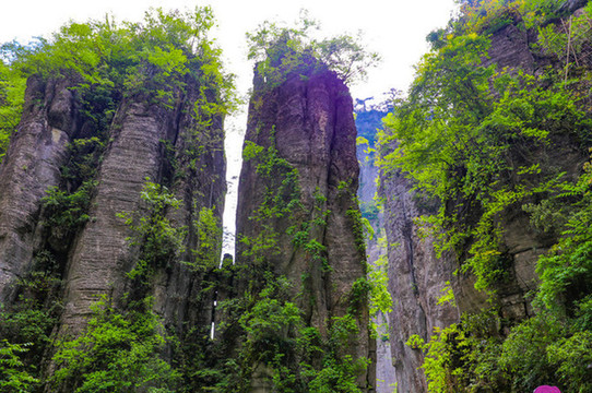 梭布垭石林:【梭布垭石林】成形于奥陶纪的石林,翠屏环绕,群峰竞秀,美轮美奂。梭布垭石林风景名胜区称为世界第一奥陶纪石林,是国家AAAA级旅游景区,位于湖北省恩施市太阳河乡境内,总面积21平方公里,整个石林外形象一只巨大的葫芦,四周翠屏环绕,群峰竞秀。它是世界上具有代表性的奥陶纪石林,景区内独特的“溶纹”、“戴冠”景观,是一大亮点,狭缝秘境、化石古迹随处可见,堪称一座远古地质博物馆。