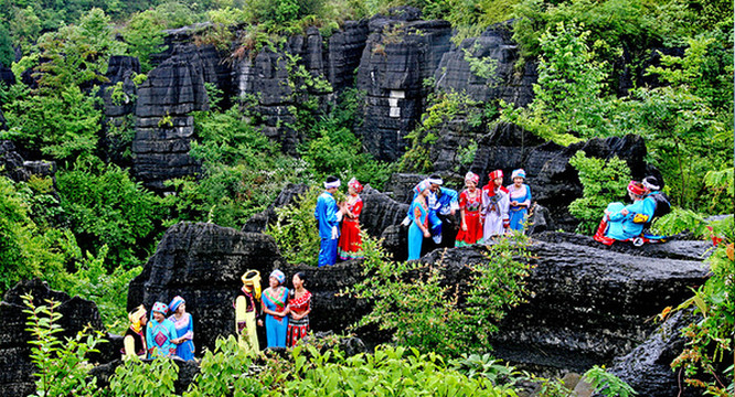 第三天、梭布垭石林风景区位于湖北省恩施市太阳河乡境内,石林由奥陶纪灰岩组成,是世界上最早的奥陶纪石林,总面积21平方公里,是中国第二大石林,其植被居全国石林之首。梭布垭石林是有名的戴冠石林、化石石林、情缘石林。现已开发出7平方公里,属典型的喀斯特地貌,景区因地质岩溶现象而形成,是以石林为主的自然生态风景区,溶纹景观是其最重要的景观特点。