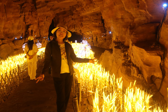 腾龙洞是利川唯一的5A景区,当然是必选景点。2号早上自然醒后在巷子口的早点摊吃了青椒肉丝拌面。惊喜的看到旁边就是武汉城投投资的一栋造型别致的建筑 “利天下”(后来散步看了下,应该是利川红茶品牌展示推广之地。星斗山的利川红茶可是国家领导人在东湖宾馆接待三哥魔笛时用的,后来诸多事实证明只可惜三哥不懂茶中意啊)。驱车3公里来到腾龙洞游客中心,靠马路边停下(游客中心入口处有交警告示牌,只要在范围内的路边均可停车,不抄牌)。电子票每人172元(含景区往返交通车),虽然是周四,但真是出乎意料的人多。观察大多数都是带孩子及老人出游。号称亚洲最大的腾龙洞真得让我惊讶了:咸宁的隐水洞和他相比,只能是孙辈的存在吧。洞内全程游览的地方没有咆哮的地下暗河(清江奔腾的江水从洞口左侧呼啸而入,据说出来之地已在十多公里以外了)。土家文化表演的确是重头戏,每一场都座无虚席,环顾了下,怎么的应该是有千人以上吧。演员倾情演出,再现了土家族之传统文明及其发展,非常值得一看。全洞参观完返回时,夫人居然要求再看了一遍。山中之洞,洞中有山。第二个表演场所在进洞后约三分之二路程之地。激光秀,诠释的是腾龙洞的神话传说,也是场场满员。越接近尽头,温度月底。最冷之处在三圣上附近了,约5度左右。沧海桑田,绵延的星光,巴人图腾,百吨不止的腾龙洞藏酒...... 直到下午5点,我们才步出洞口寻找返程大巴车。172元的门票要是和第二天的鹿堰坪景区相比,真是太值了。晚饭后仍然到滨江公园散步,夫人挽着我的手步行在平台下面的步道上,徜徉在音乐喷泉的旋律中,突然我对夫人说:这会儿我的明显感受就是,此时此刻,我感到很幸福!