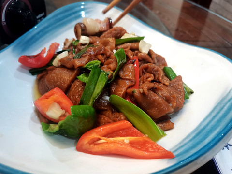 慢悠悠直到下午4点才到利川的酒店。这个酒店在主马路上没有标志牌,不太好找。好的是店员热情接待,并带我们停车,一切总算是安顿下来了。本来准备外出晚餐,下楼时电梯里的工作人员说1-5层都是餐饮(阿富餐饮,电梯里有介绍),让我们可以去2楼看下。抱着试试看的心态到了2楼总台,服务员忙得不行,但还是一口川味风格的言语热情主动接待了我俩,并推荐了利川特色菜:鸡汤莼菜、柏杨豆干、根粑腊肉。三天的就餐都选择在酒店自有的阿富餐饮,人均消费在50多元。多年前在新闻里看到过利川莼菜远销日韩等,且是当天采摘当天摆到受用者餐桌。今天算是开了洋荤了,第一次品尝莼菜这个高端菜肴,还有恩施有名的柏杨豆干等。一句话总结:名不虚传啊!饭后下楼转转,居然发现误打误撞的我们下榻酒店居然和利川滨江公园只有一路之隔。无声流淌的江水之上音乐喷泉正在上演,采用了目前流行的激光雨幕成像技术,众多本地的、外来旅客或驻足或漫步。这样的场景难道不是一幅人民幸福安康温馨休闲的画卷?在好奇心的驱使下和夫人从一头走到了另一头,匆匆返回酒店休息。因为气温只在20度左右,极端怕热且短袖短裤的我感觉到了 冷。