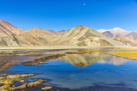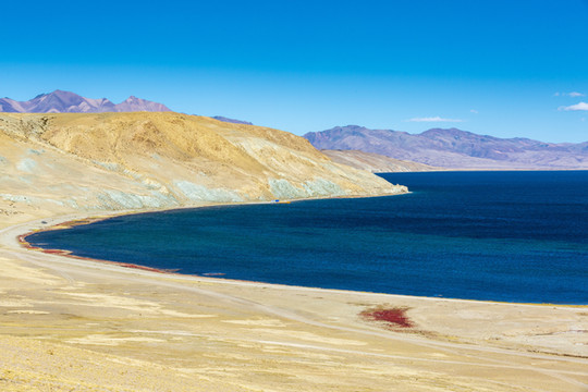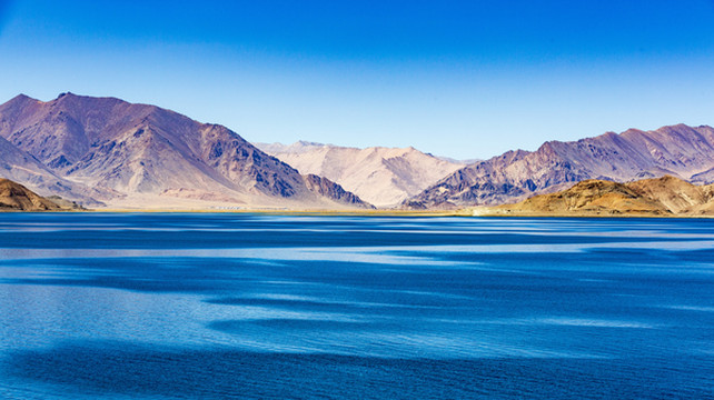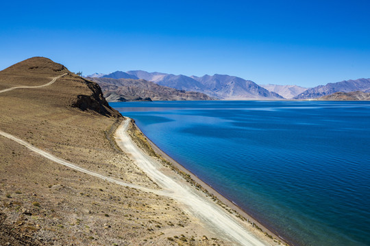 班公湖,藏语称“错木昂拉仁波湖”,意为“长脖子天鹅湖”,湖水清澈,蓝得令人心醉,湖面在阳光映照下波光粼粼,呈现出不同的颜色。